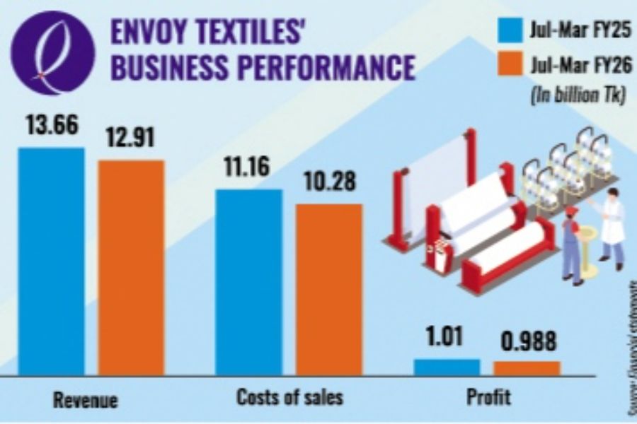 For the nine months through March this year, the company's profit dropped slightly by 2.3 per cent to Tk 988 million, while revenue decreased 5.5 per cent to Tk 12.91 billion.