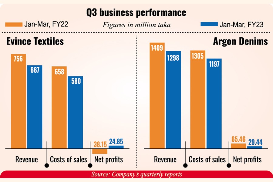 Evince Textiles returned to profit in January-March 2023 while Argon Denims' profit slumped 55 per cent year-on-year in the quarter ended in March due to a decrease in export revenue.