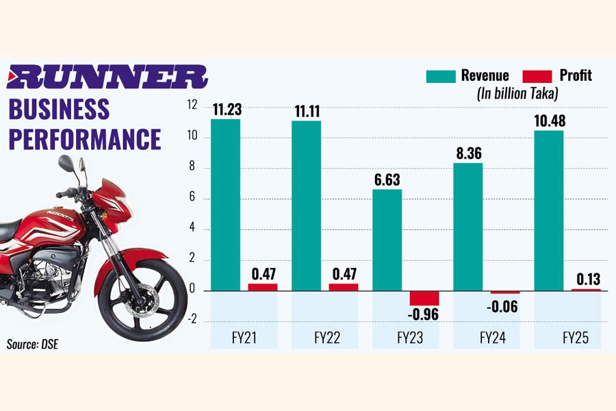 In FY23, however, Runner Automobiles, an 'A' category company, incurred a loss of Tk 879 million following a sharp decline in two-wheeler, three-wheeler, and commercial vehicle sales on the back of high import costs due to currency devaluation and dollar shortages.