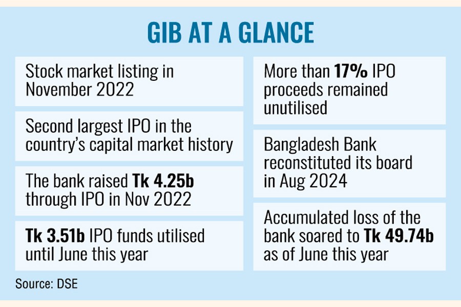 Troubled lender Global Islami Bank could not fully utilise the proceeds from its initial public offering (IPO) within the stipulated timeframe and is now seeking an extension until November 2026 to complete the fund deployment.