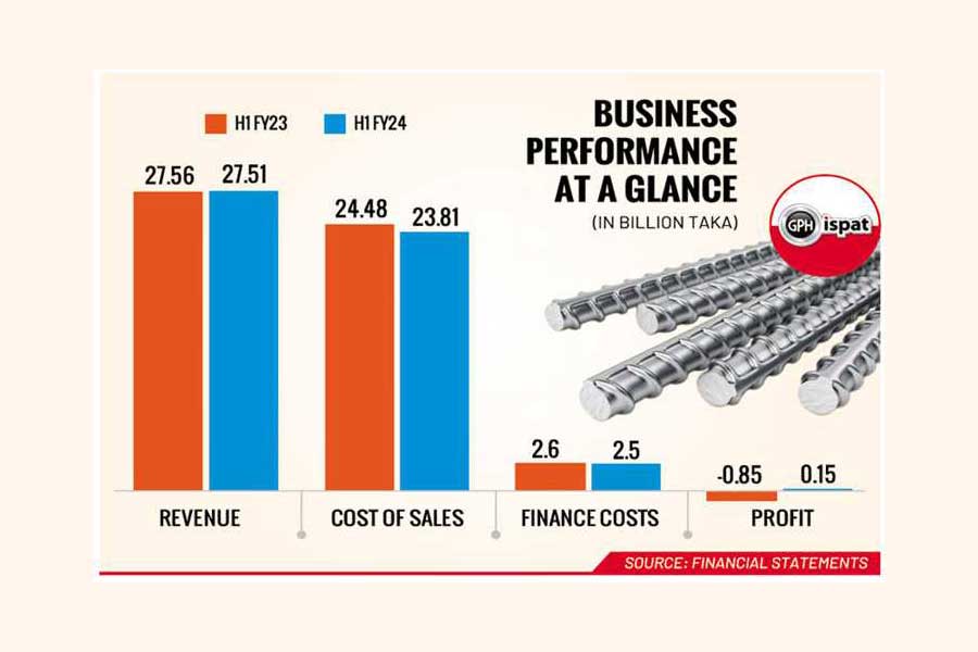 However, GPH Ispat's half-yearly profit fell to Tk 154 million for the six months through December 2023 since its first quarter loss wiped out part of the profit made in the second quarter. Still, the business did better in the first half of FY24, compared to the same period of FY23 when it experienced a loss of Tk 850 million.