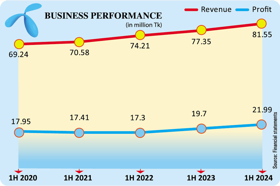 The leading telecom company's revenue, however, grew 5.6 per cent year-on-year to Tk 42.2 billion in the second quarter through June this year, riding on a higher subscriber base, according to its financial statements published on Tuesday.