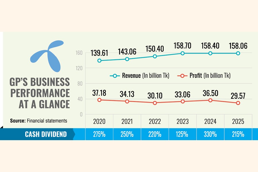 Grameenphone earned its lowest profit in eight years in 2025-Tk 29.6 billion-largely driven by cost pressure linked to recent investments in spectrum and the network, currency depreciation, and heavy taxes.