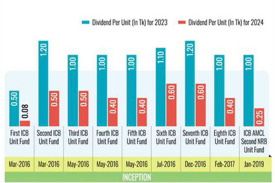 ICB Asset Management Company has declared dividends against nine open-ended mutual funds for 2024, despite the market being bearish throughout the year while many close-ended funds failed to declare any dividend for the year.