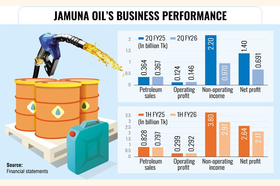 "Jamuna Oil's profit plunged as interest on bank deposits with Sammilito Islami Bank for the second quarter of FY26 has not been accrued, and interest accrued for the first quarter earlier has been written back," said the company in its earnings note.