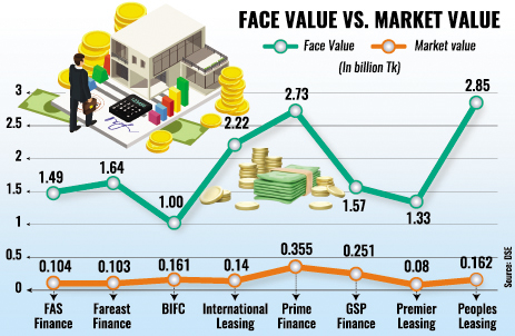However, the actual loss is far greater. Together, the eight NBFIs have a combined paid-up capital of Tk 14.84 billion, representing the face value of shares at Tk 10 each.