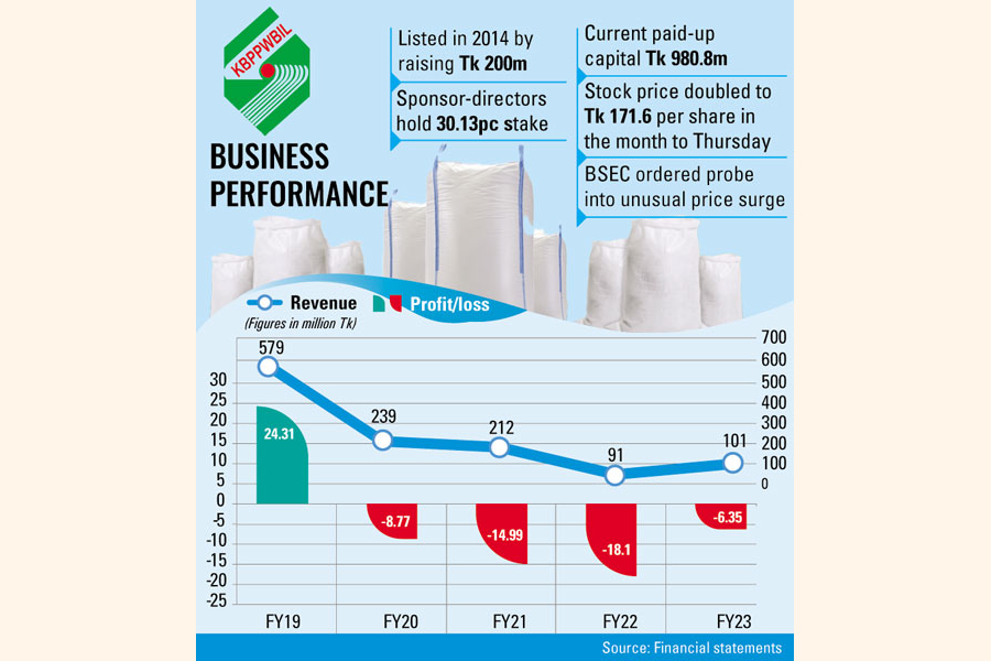 The loss-making company's stock more than doubled in the month to Sunday to Tk 176.5 per share without any reason for investors to be keen on betting on the stock.