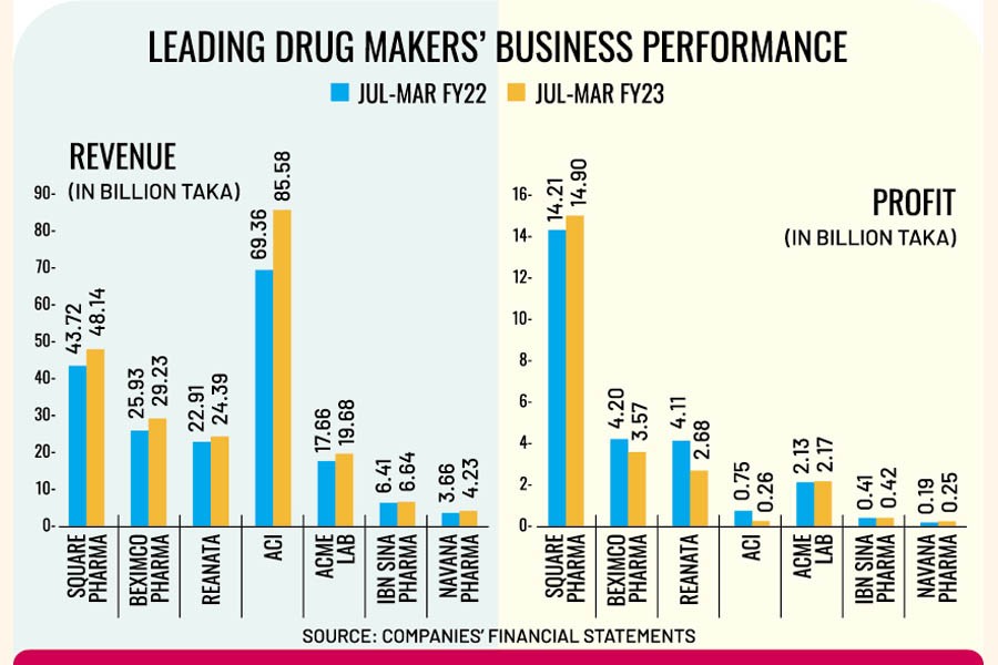 Leading drug makers endured a year-on-year decline in profit in the latest quarter through March of FY23 owing to higher production costs.