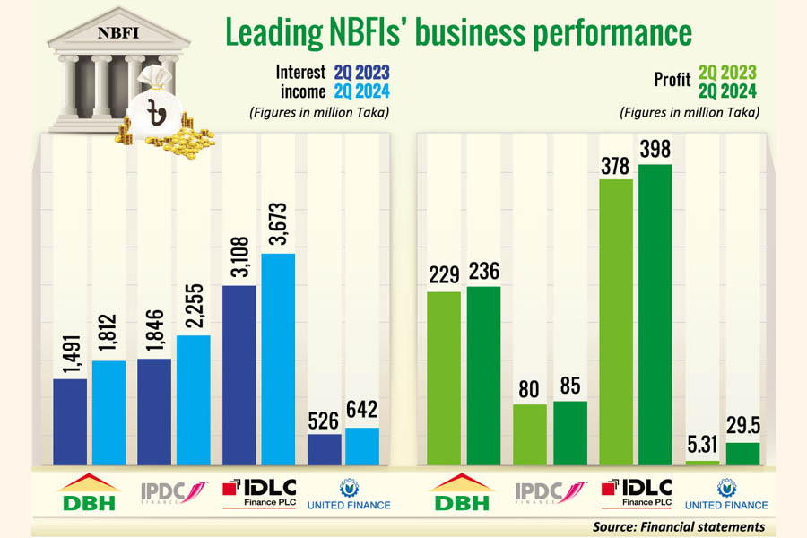 Despite economic challenges amid high inflation, the leading non-bank financial institutions (NBFIs) posted higher profits in the second quarter (Q2) through June this year, driven by a higher interest spread.