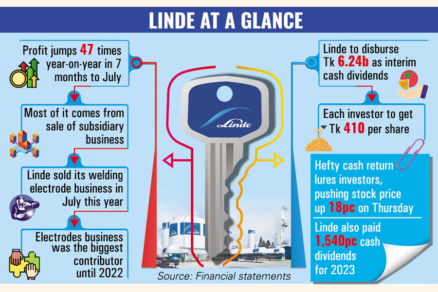 Akramul Alam, head of research at Royal Capital, said Linde would disburse the record dividends from the fund coming from the sale of its welding business unit. "It would be a one-off payment, not normal dividend payout, which companies usually pay based on profit from regular business operations."