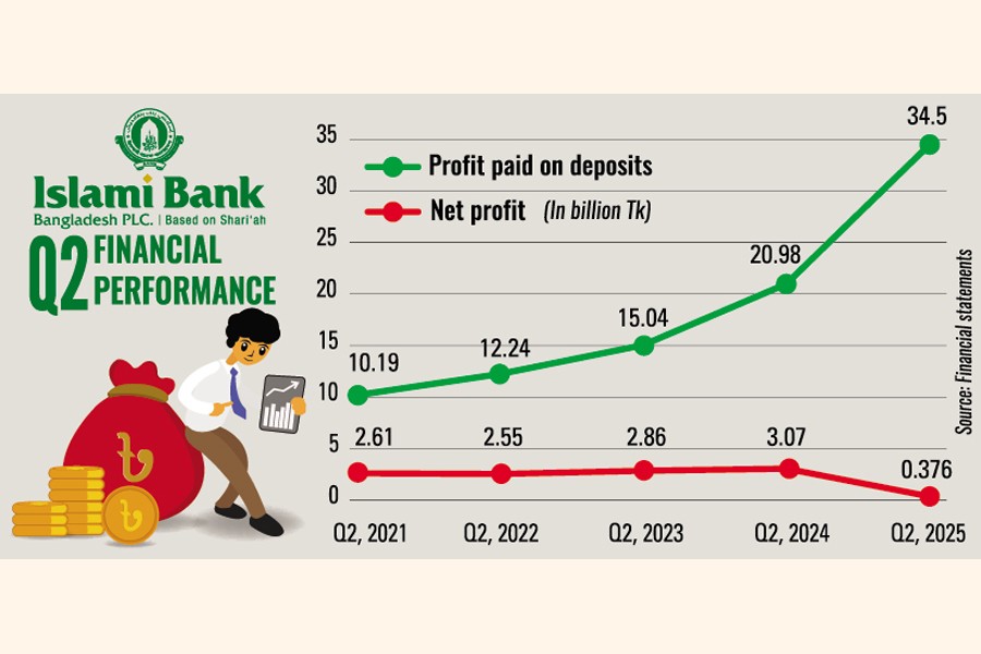 Higher loan defaults pushed up provisions significantly. Alongside, the bank paid Tk 34.5 billion to mudaraba depositors in April-June this year - a 64 per cent increase over the same quarter last year.