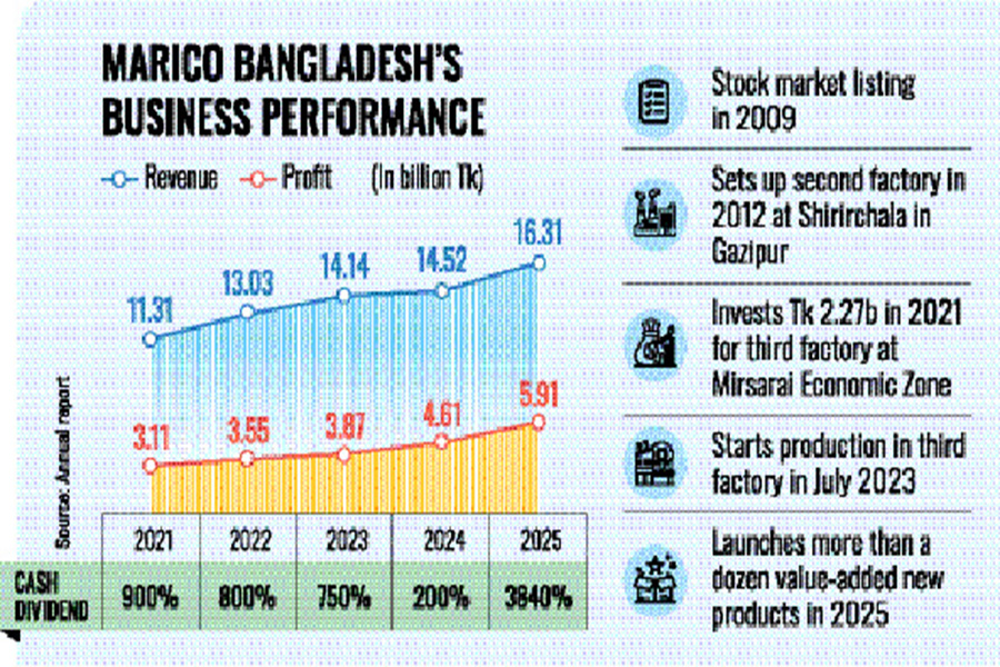 Marico Bangladesh's compound annual growth rates (CAGR) of revenue and profit between FY21 and FY25 are 7.76 per cent and 18.45 per cent respectively.