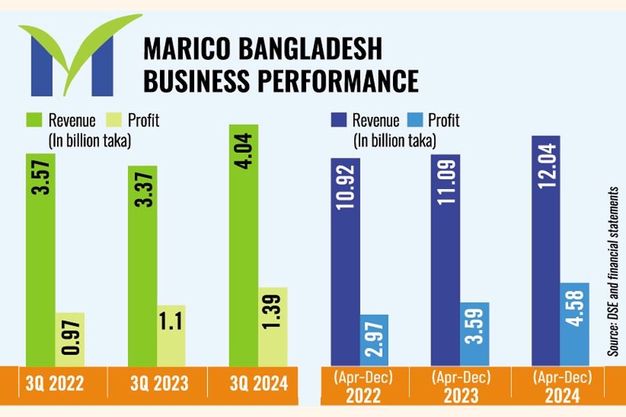 Marico reported a 27.51 per cent growth in profit year-on-year to Tk 4.58 billion in the nine months to December last year.