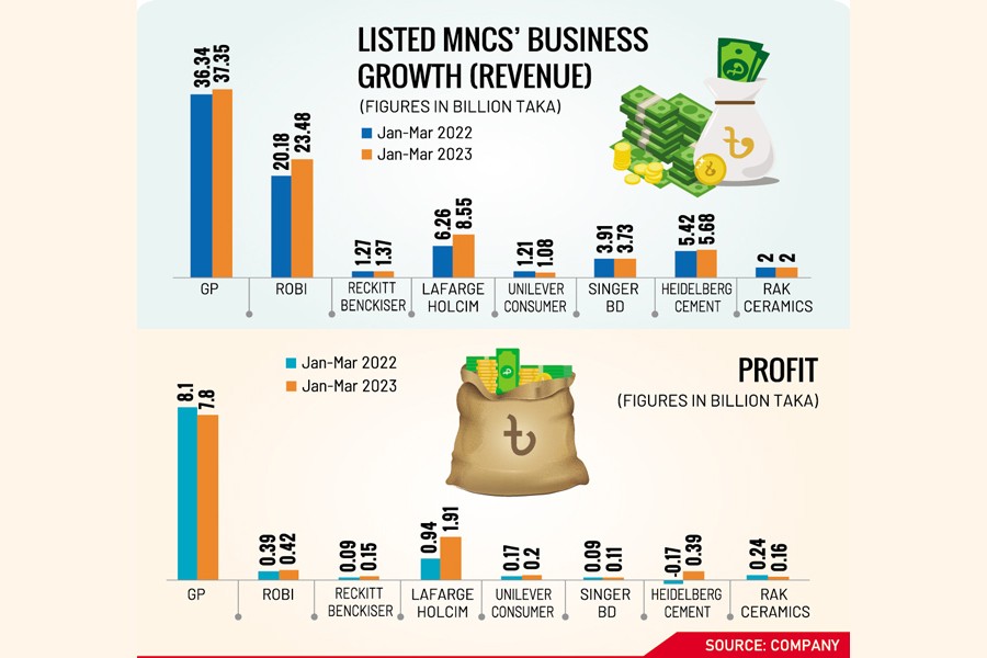 Of the multinational companies, Grameenphone and RAK Ceramics suffered de-growth in profit.