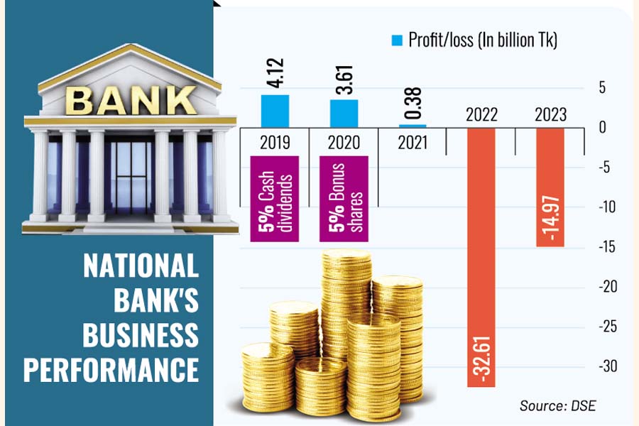 National Bank's classified loans amounted to Tk 123.68 billion by the end of 2023, accounting for 28.82 per cent of the total loans and advances disbursed by the bank, according to the data of the Bangladesh Bank.