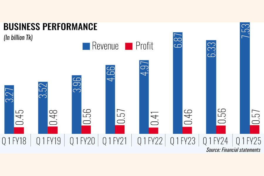 Despite a significant year-on-year jump in revenue, Olympic Industries' profit grew less than 1 per cent to Tk 565 million in the first quarter of FY25 amid much higher operating expenses.