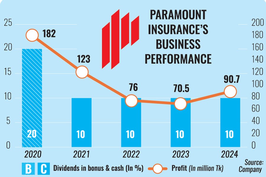 Paramount Insurance secured a 29 per cent year-on-year growth in profit to Tk 90.7 million in 2024, supported by higher premium income amid a challenging business climate.