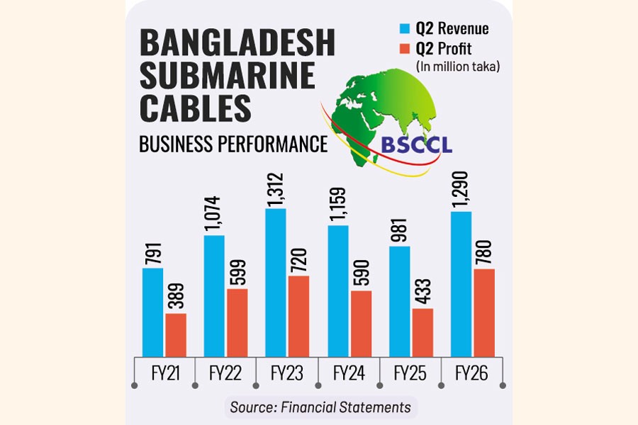 Bangladesh Submarine Cables recorded a remarkable 80 per cent rise in profit to Tk 780.85 million in the second quarter of FY26, as revenue surged by more than 30 per cent compared with the same quarter a year earlier.