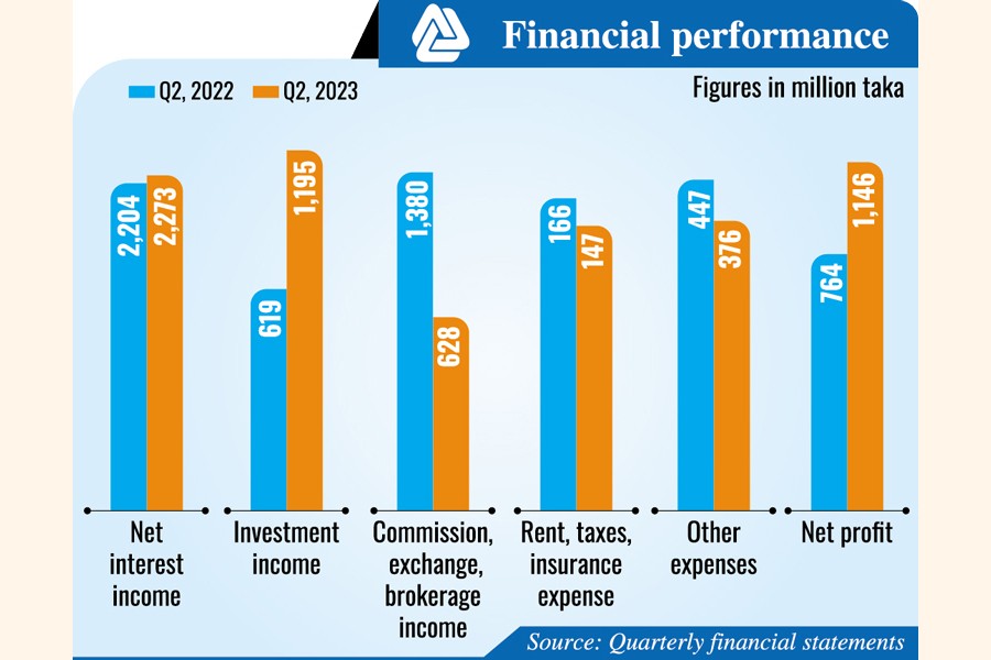 The bank said consolidated investment income soared 93 per cent year-on-year to nearly Tk 1.20 billion in the April-June quarter because of an increase in investment in government securities and higher yield rate of such investment instruments, said the bank.