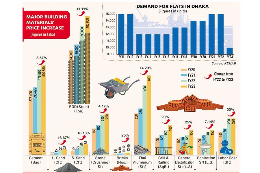 The overall construction cost went up 20 per cent in FY23, compared to FY22, leading to a jump in apartment prices. On the other hand, persistently high inflation reduced people's purchasing power, as they are spending more on their priority needs.