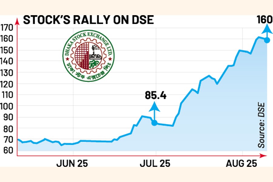 On June 15, the company's shares traded at Tk 68 each. By August 7, the price escalated to Tk 161.70 a share, pushing the company's price-to-earnings (P/E) ratio to 461.54, according to unaudited financial statements of the company.