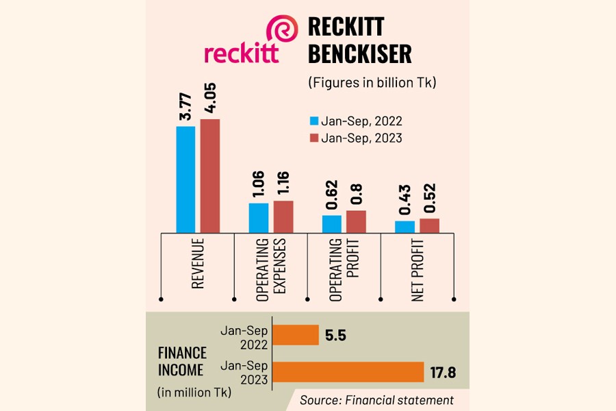 Reckitt Benckiser (Bangladesh) has reported a 21 per cent year-on-year growth in profit to Tk 0.52 billion for January-September this year, driven by higher revenue and a significant jump in finance income.