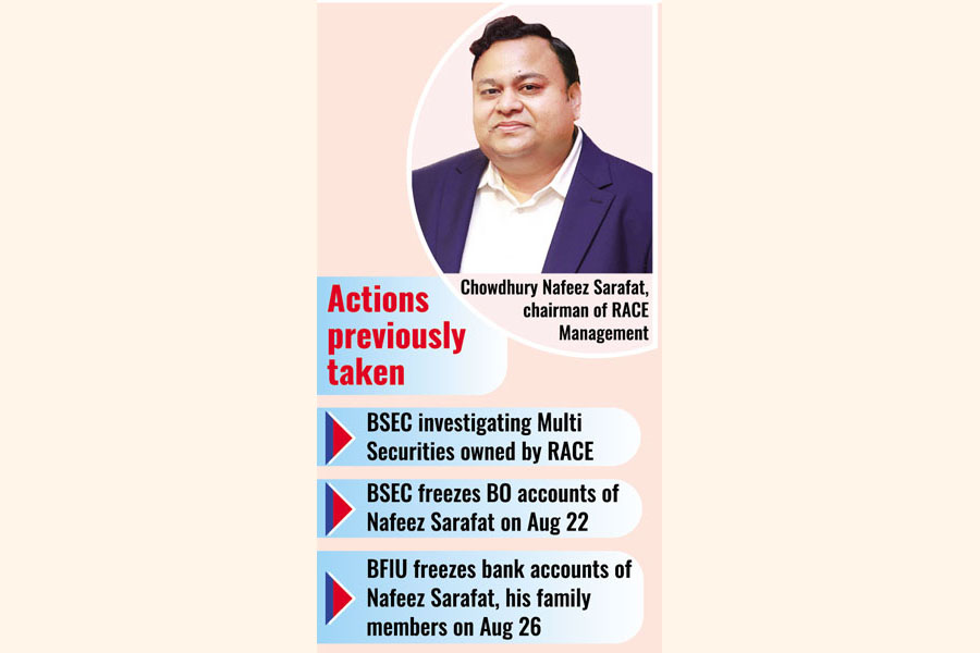 On August 22, the BSEC suspended trades in and transfers of securities in the portfolios of Mr Sarafat.