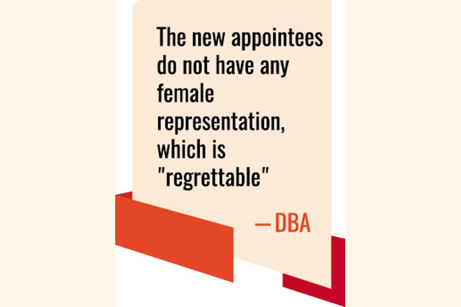 The new appointees do not have any female representation, which is "regrettable", said the DSE Brokers Association (DBA) of Bangladesh.
