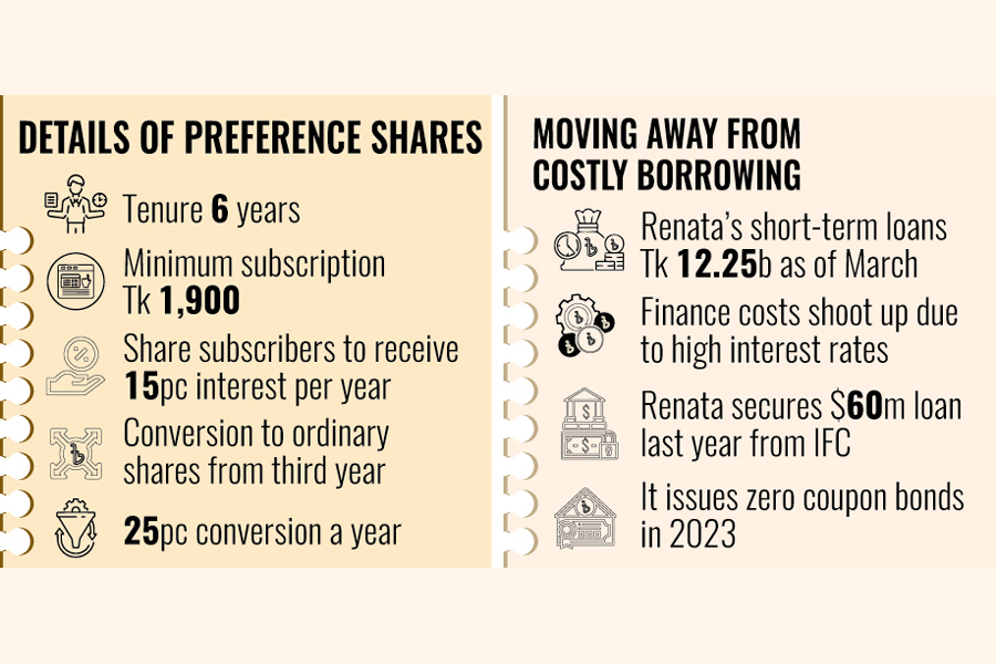 Renata has decided to revise the terms for issuing preference shares worth Tk 3.25 billion to reduce its finance cost burden by paying off short-term bank loans.