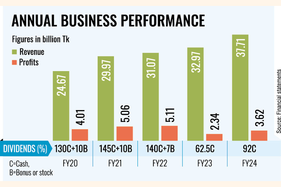Based on the profit growth, the company declared a 92 per cent cash dividend, meaning the shareholders will get Tk 9.2 per share.