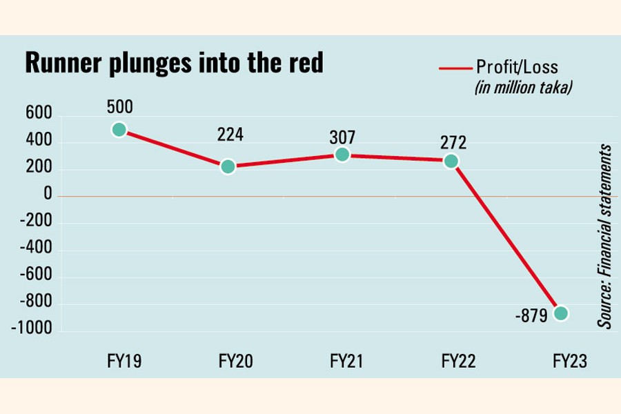 Runner Automobiles experienced a loss of Tk 879.90 million in FY23 after reporting profits for four years in a row.