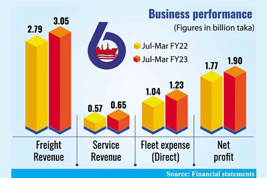 The state-run oceangoing vessel management authority logged a profit of Tk 1.90 billion in the nine months through March of FY23, a 7.7 per cent increase from the same period a year ago.
