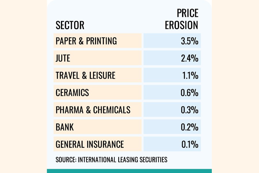It declined 3.5 per cent mainly because of the price correction endured by Hakkani Pulp & Paper Mills and Sonali Paper & Board Mills.
