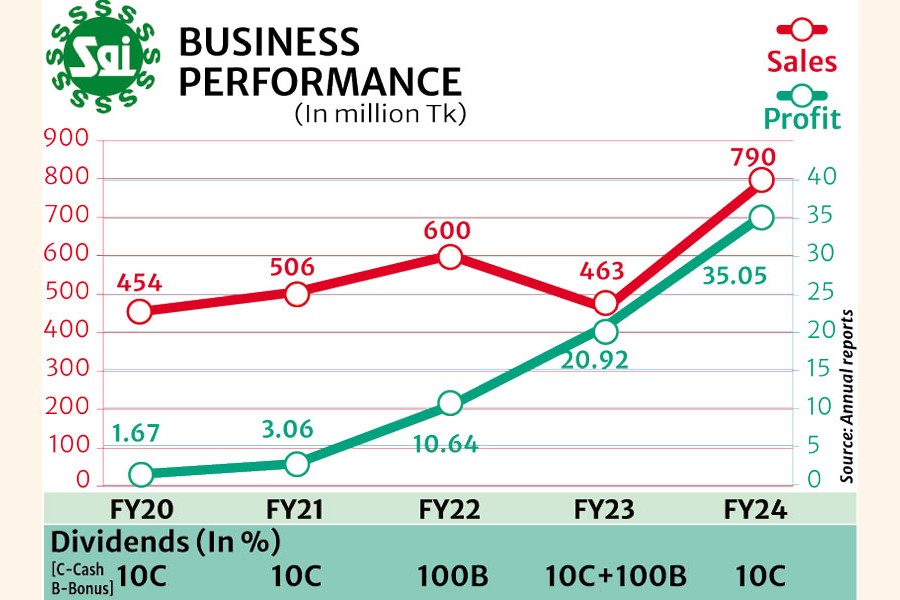 Sonali Aansh Industries reported sales revenue of Tk 790 million for FY24.