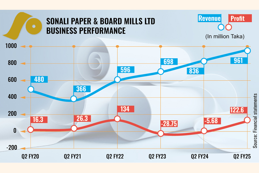 Sonali Paper & Board Mills returned to profit in the second quarter (Q2) through December 2024 of the current fiscal year, supported by higher revenue and a reduction in finance costs.