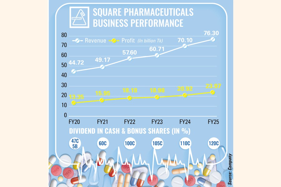 Square Pharmaceuticals has posted a record annual profit of Tk 23.97 billion in FY25, driven by higher sales and substantial earnings from subsidiaries.