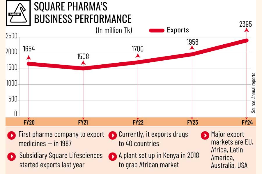 Square Pharmaceuticals registered a 22.4 per cent year-on-year export growth in FY24, riding on a higher demand for its products in the global market.