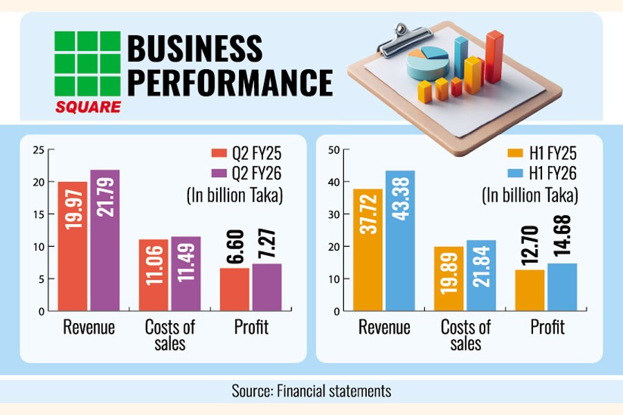 Square Pharmaceuticals posted double-digit year-on-year profit growth to Tk 7.27 billion in the second quarter of FY26, fueled by higher sales and substantial income from subsidiaries.