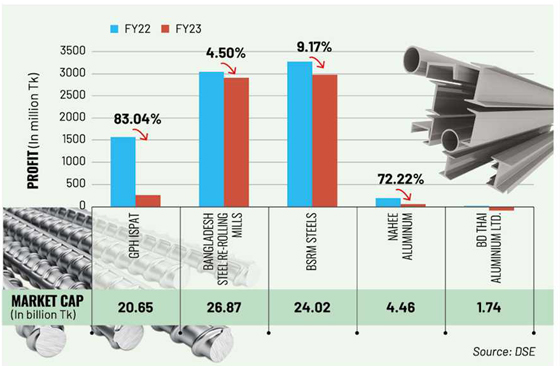 This is the backdrop against which Bangladesh Steel Re-Rolling Mills and BSRM Steels, two companies of the same group controlling nearly 25 to 28 percent of the domestic steel market, have shown a 5-9 percent drop in profit in FY23, compared to FY22.