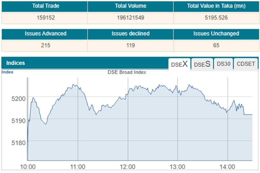 The stock index in the Chattogram Stock Exchange (CSE) also recorded gains, rising by 43 points.