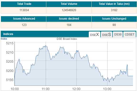 Turnover, a crucial indicator of the market, stood at Tk 3.18 billion, down 6.01 per cent from the previous trading day.
