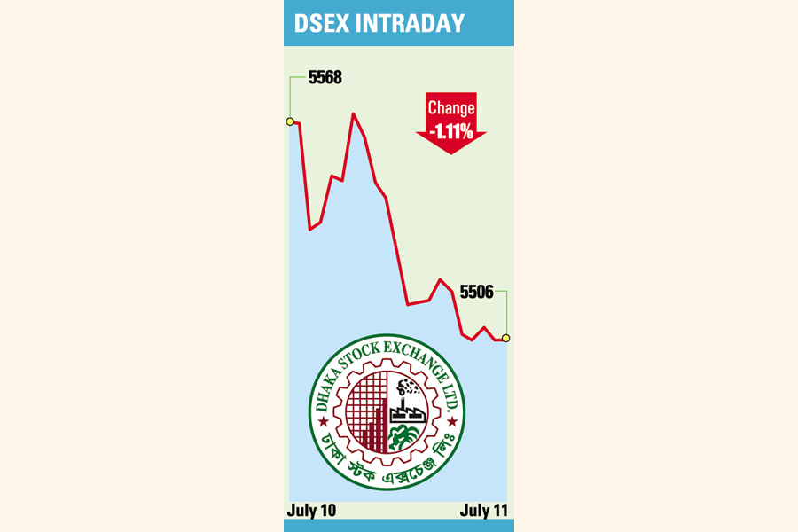 Subsequently, the DSEX, the prime index of the Dhaka Stock Exchange (DSE), finally went down more than 61 points or 1.11 per cent to 5,506.