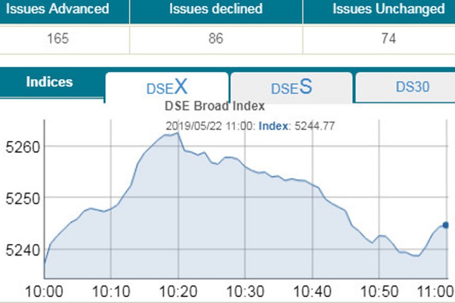 DSEX, the prime index of the DSE, went up by 7.61 points or 0.14 per cent to reach at 5,244 points at 11:00am.
