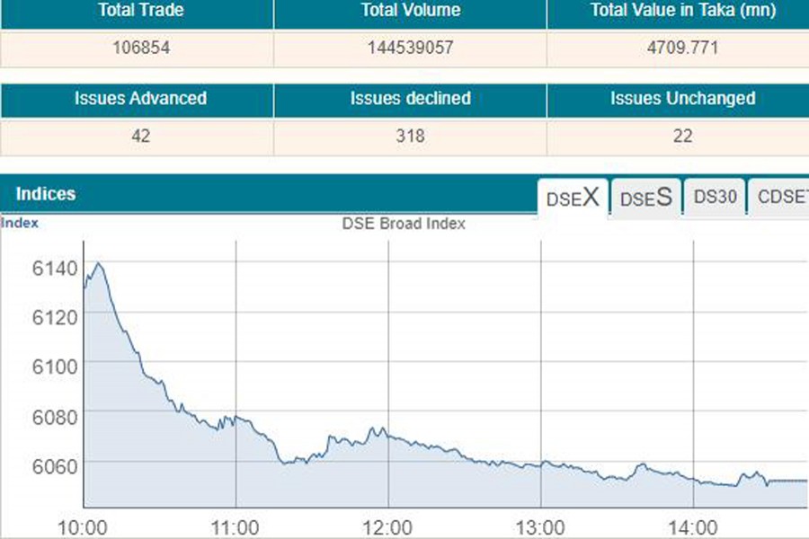 Finally, DSEX, the key index of the Dhaka Stock Exchange (DSE), went up by 30.45 points or 0.50 per cent to settle at 6,083, after losing over 314 points in the past nine trading days.
