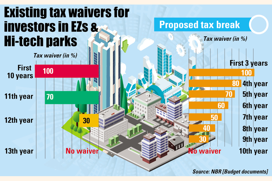An SRO (statutory regulatory order) issued by the revenue board in 2015 announced 100 per cent tax exemptions on earnings of production units in the special zones for 10 years from the commencement of the operation.