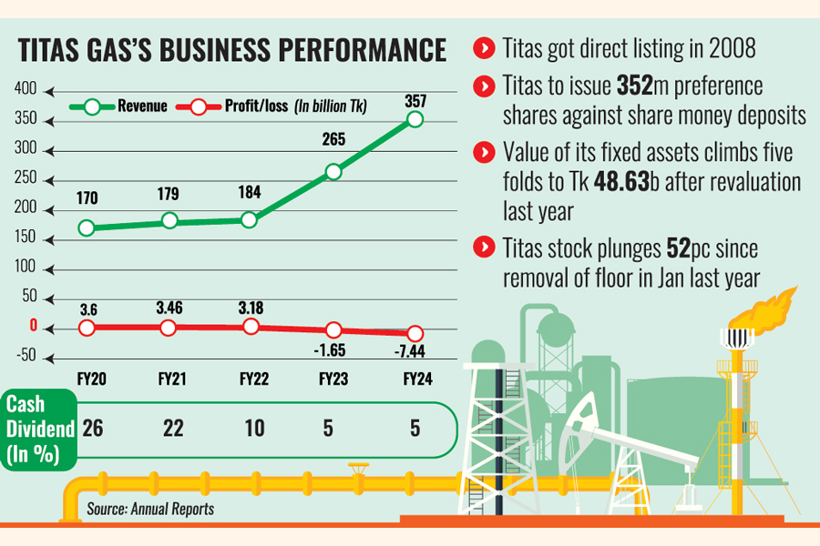 Titas Gas, which enjoys a monopoly on pipeline gas distribution in Dhaka and Mymensingh, will issue nearly 352 million irredeemable non-cumulative preference shares at the face value of Tk 10 each in favour of the government.