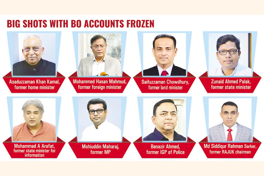 The regulator has also frozen the BO accounts of former IGP of Police Benazir Ahmed and his family members and former chairman of Rajuk Major General (Retd) Md Siddiqur Rahman Sarker and his wife Gazi Rebeka Rowshan following court orders over graft charges.