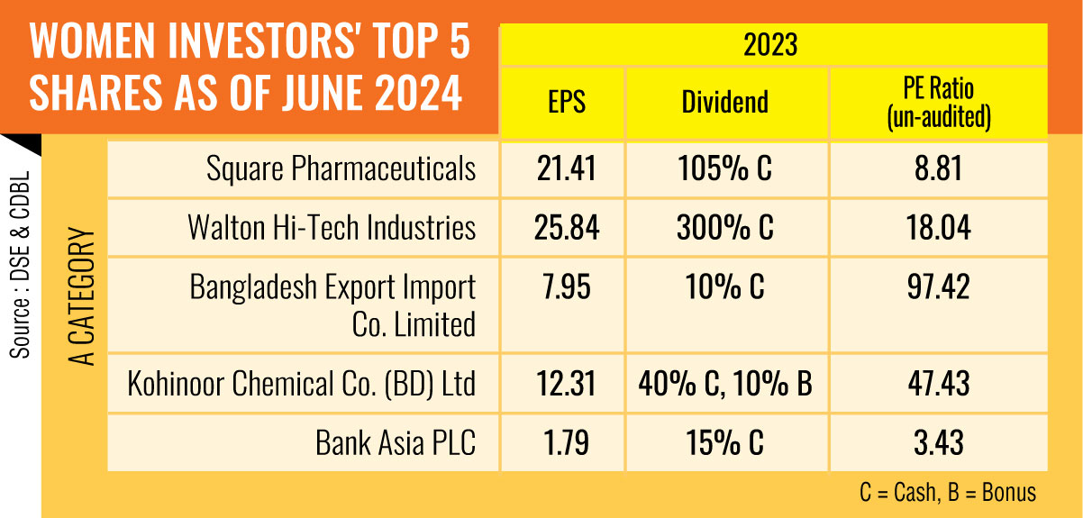 Female investors had invested 73 per cent in 'A' category shares as of June 2023. Their male counterparts invested in this type of share 65 per cent less, according to the CDBL.