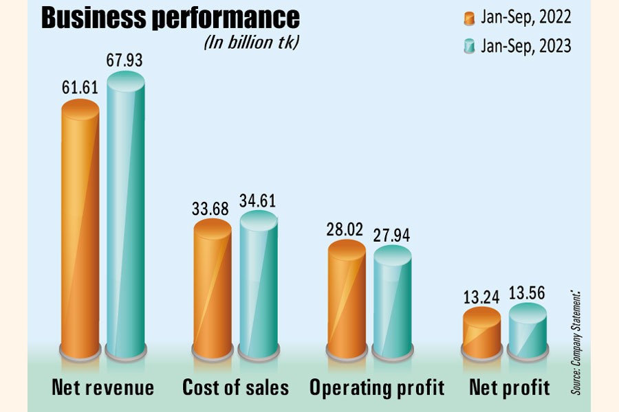 Its revenue during the period went up 10.24 per cent to Tk 67.92 billion, compared to the same period a year ago. The profit growth was not as high as revenue growth due to a jump in the cost of sales and operating expenses.