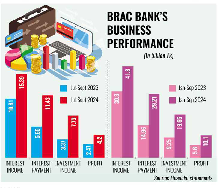 BRAC Bank secured an impressive 70 per cent year-on-year growth in profit to Tk 4.2 billion in the third quarter (Q3) this year, driven by substantial income from investment in government securities.